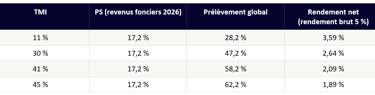 Verdict : Technique optimale pour les profils TMI 41 % et 45 % disposant d'un horizon de détention long (10 à 15 ans minimum) et n'ayant pas besoin de revenus immédiats. Particulièrement efficace en phase d'accumulation avant la retraite.